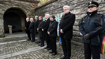 Das offizielle Totengedenken, zu dem sich alle Besucherinnen und Besucher der Saalfeier von Plätzen erhoben, sprach I. Landtagsvizepräsident Karl Freller.