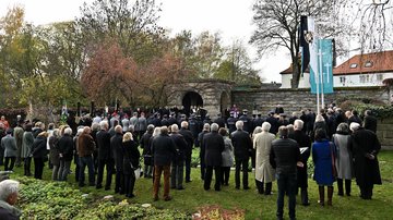 Volksbund Deutsche Kriegsgräberfürsorge e.V., dankte in ihrem Schlusswort allen Mitwirkenden herzlich für deren Engagement und den Gästen für den Zuspruch, den die Landesfeier aus ihren Reihen erfahren hat.