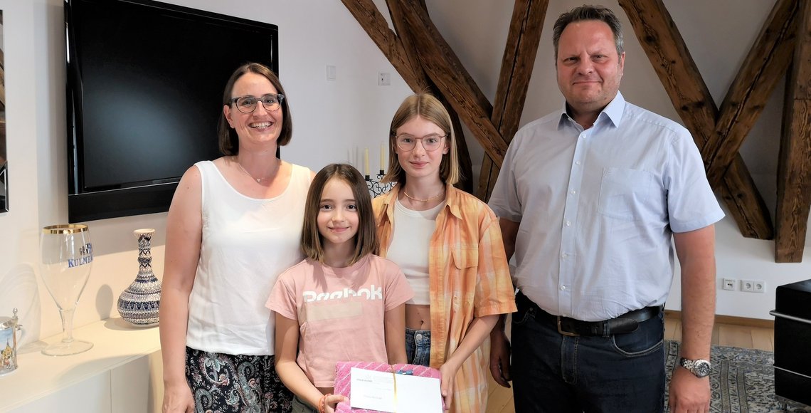 „Gerade in der heutigen Zeit und in Anbetracht des furchtbaren Krieges in unserer europäischen Nachbarschaft, kann nicht oft genug betont werden, welche bedeutende Aufgabe die aktive Friedensgestaltung darstellt und dass das Engagement der nachkommenden Generation dabei unverzichtbar ist“, lobte OB Ingo Lehmann die Arbeit der jungen Kirchleuserin, die in Begleitung ihrer Mutter Jennifer und Schwester Charlotte der Einladung ins
