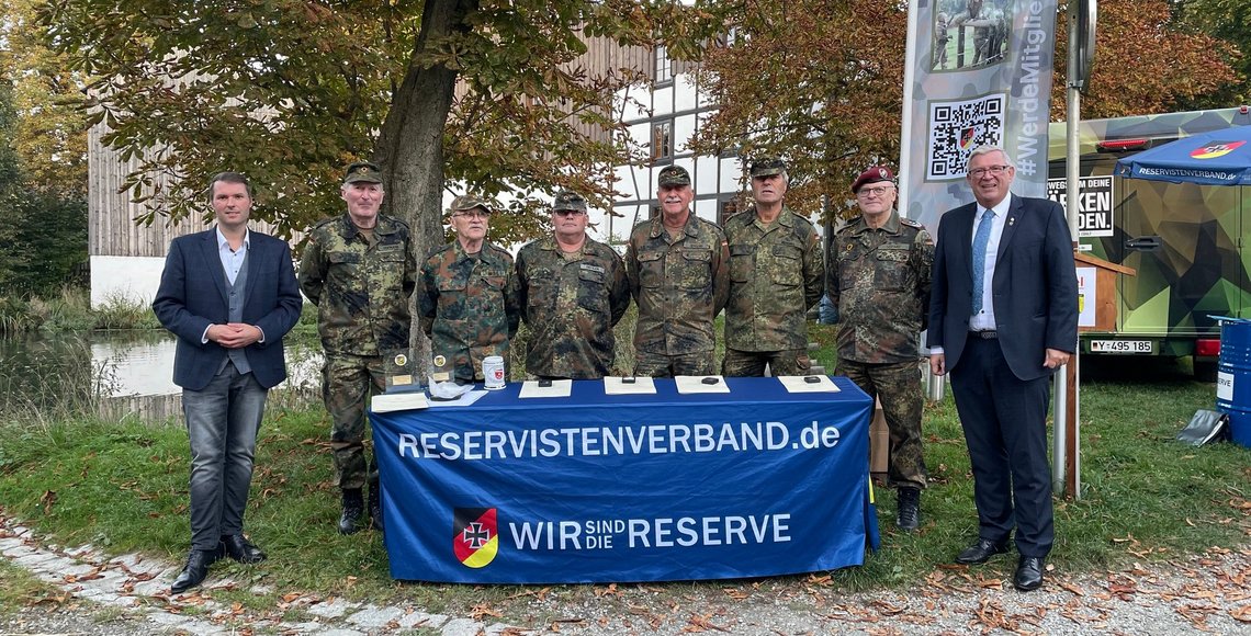 Im Rahmen des mittlerweile traditionellen internationalen „Vier-Länder Marsches 2021“ entlang des grünen Bandes von Ebmath in Sachsen bis zum Deutsch-Deutschen Museum in Mödlareuth am 9.10.2021 wurden fünf Kameraden der Hofer Reservisten mit Verdienstspangen des Volksbundes Deutsche Kriegsgräberfürsorge durch den Bezirksgeschäftsführer des Volksbundes, Robert Fischer, ausgezeichnet.