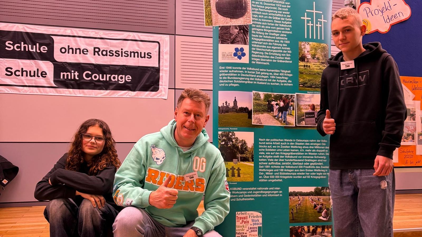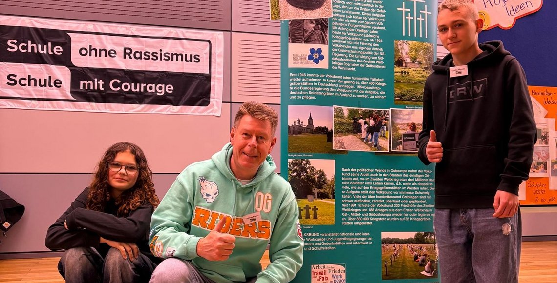 Die Mittelschule zeigte die Pflege des Kriegsopfer-Grabes auf dem Oberkotzauer Friedhof. Nach ausgiebiger Recherche der Kriegstoten und Gefallenen vor Ort – und in enger Zusammenarbeit mit der Gemeinde Oberkotzau, sprachen wir uns schließlich dafür aus, die hiesige Ehrenstätte, bestehend aus 35 Gräbern, gemeinsam zu pflegen, aufzuwerten sowie instand zu setzen. Das schuljahrübergreifende Projekt wird in Kooperation mit der örtlichen Friedhofsverwaltung sowie dem Volksbund Deutsche Kriegsgräberfürsorge Bezirksverband Oberfranken durchgeführt. Noch in diesem Schuljahr wird der Bezirksgeschäftsführer des Volksbundes Robert Fischer in der Schule einen Vortrag über die „Arbeit für den Frieden“ halten.