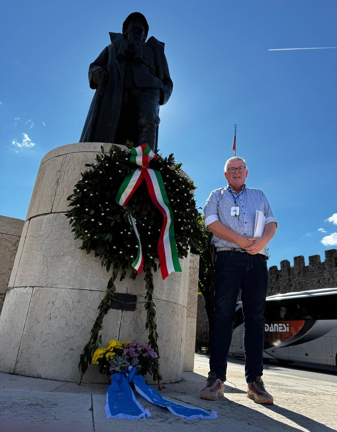 In Bassano del Grappa waren dies das Denkmal an die 4. Armee, die im Zeitraum von 1915 bis 1918 unter erheblichen Verlusten das Grappa-Massiv hielt und die Kirche Tempio Ossario, mit den ca. 6000 Soldaten, welche hier beerdigt sind. Natürlich gedachten die Reiseteilnehmer an diesem Tag, es war der 29. September, auch den "Ragazzi del `99" - der Geburtsjahrgang 1899 war der jüngste, der im Ersten Weltkrieg in Italien eingezogen wurde - und in der Viale dei Martiri den 31 Widerstandskämpfern die am 26. September 1944 (vor genau 80 Jahren) hier erhängt wurden.