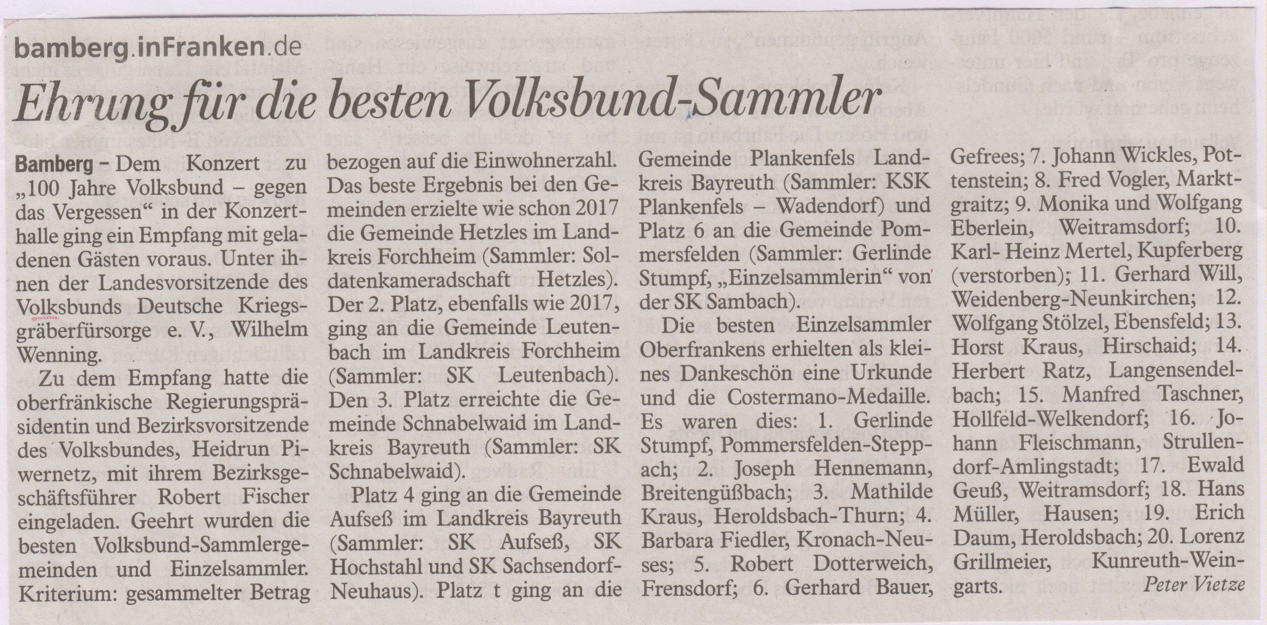 Artikel "Ehrung für die besten Volksbund-Sammler" -