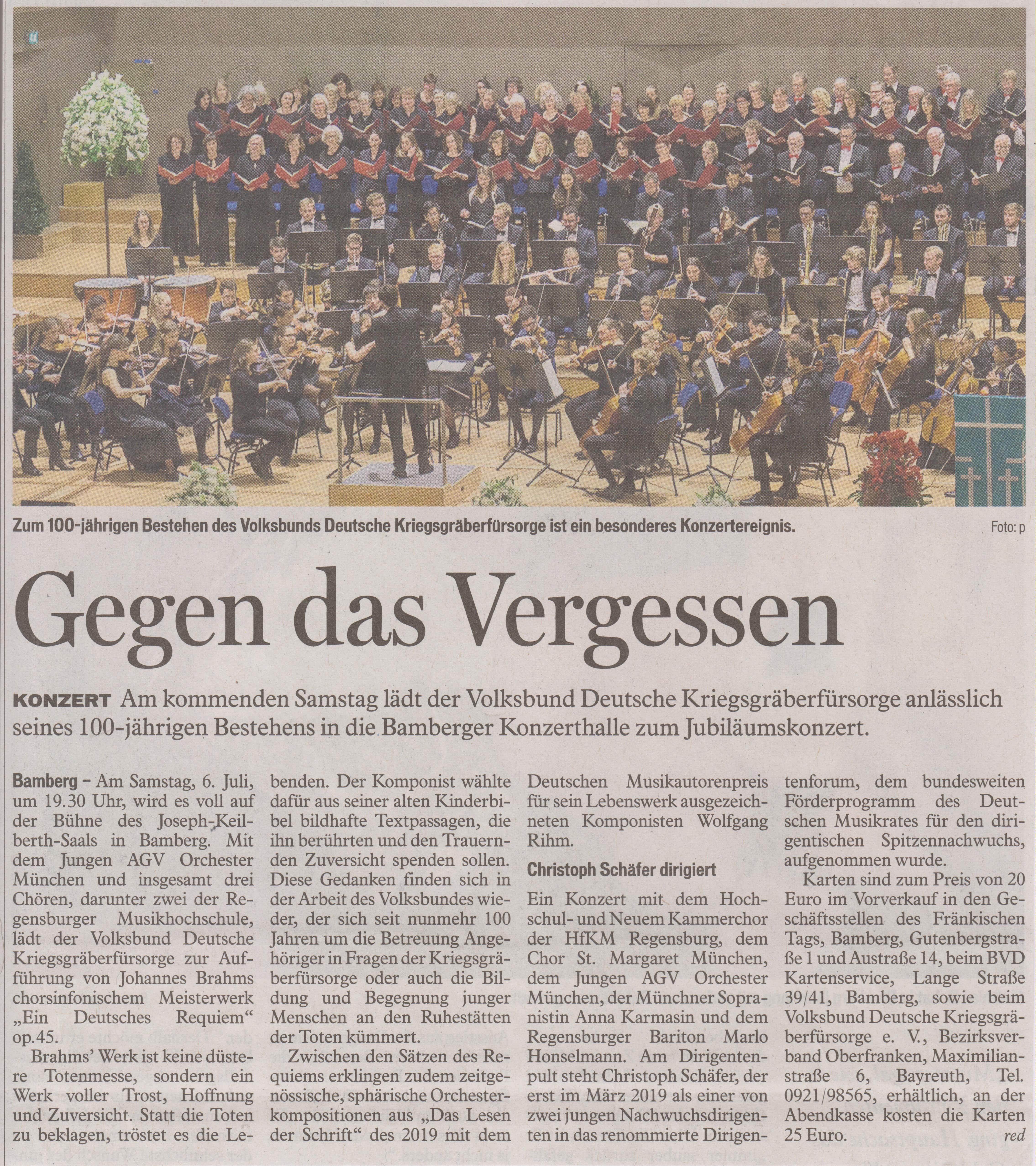 Der Bezirksverband Oberfranken im Volksbund Deutsche Kriegsgräberfürsorge e.V. bedauert die Absage des Konzerts außerordentlich. Im Vorverkauf bereits erworbene Eintrittskarten können an den jeweiligen Vorverkaufsstellen zurückgegeben werden.